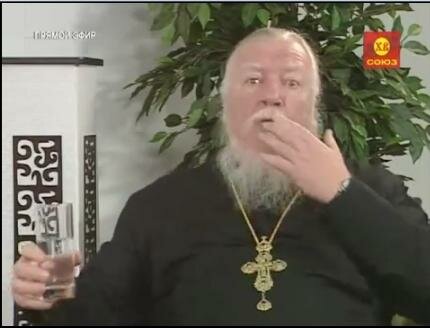 Перепуганный поп Смирнов в момент подстрекания народа к погрому протестантов. Дух так ему перехватило, что надо было водичкой запить.